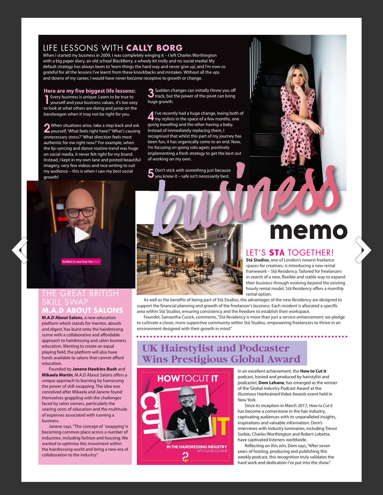 I gained great knowledge and experience from each salon before leaping into the freelance world starting my own business. Since starting my own business, with nothing other than a big dream and an unstoppable mindset, my career soon progressed into other industry areas, including TV, Magazine, Celebrity Styling, Weddings and Events.